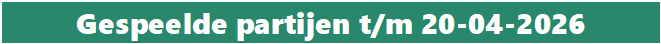 We naderen de einddatum van de te spelen wedstrijden. Er zijn al heel wat partijen gespeeld: 88% om precies te zijn. Maar er zijn dus ook nog wel wat partijen te spelen (18). Spreek met elkaar af, dat is de beste methode. Op 7 mei maken we de eindstand op, ongeacht het aantal gespeelde partijen.